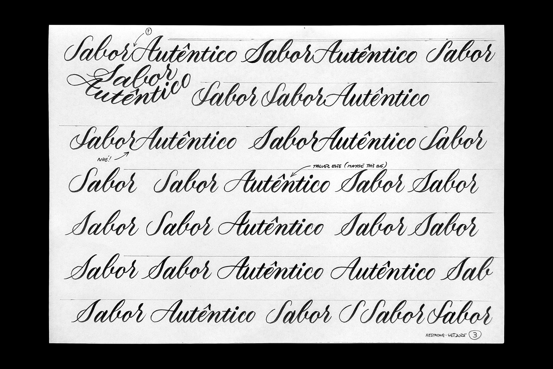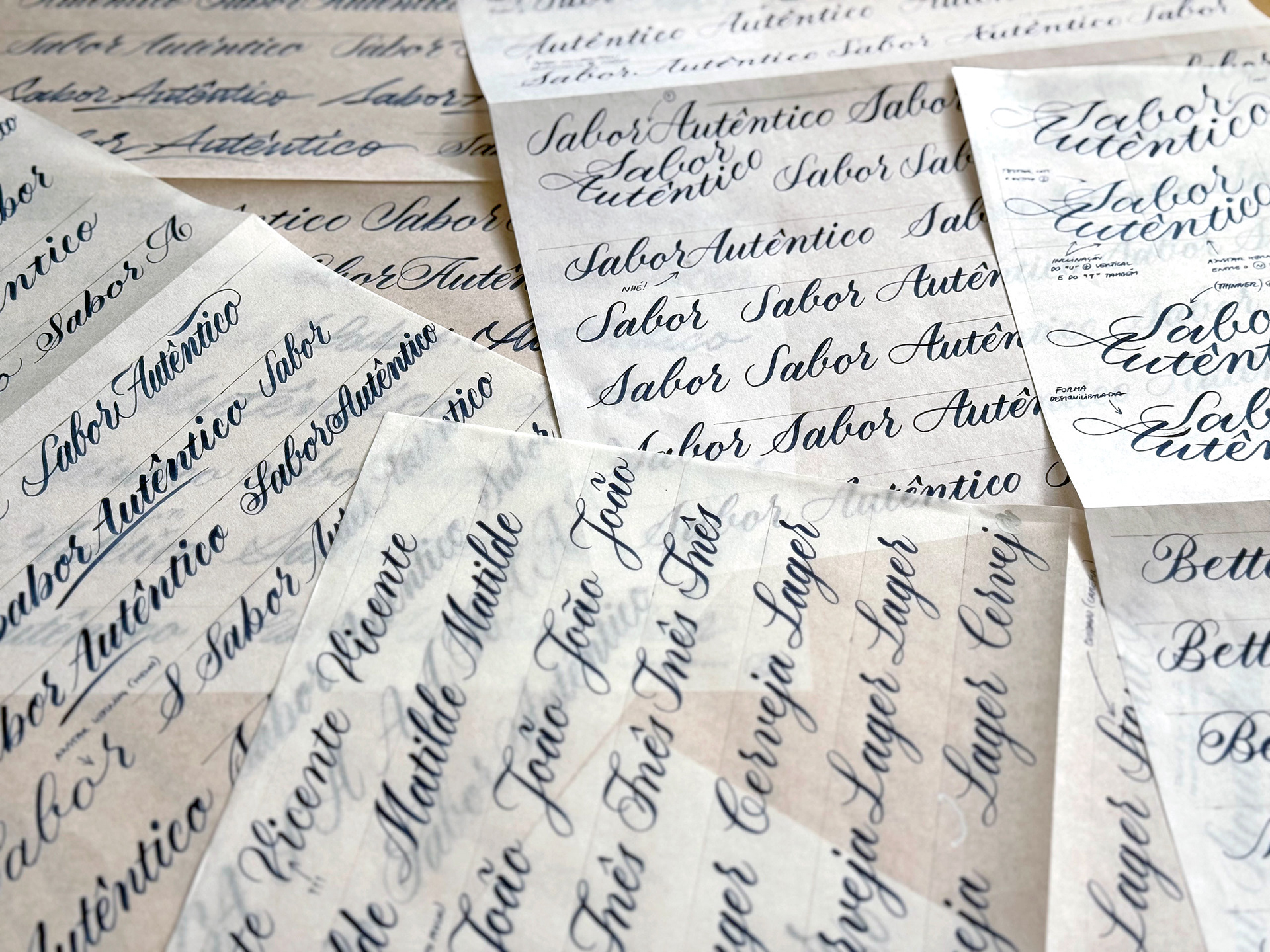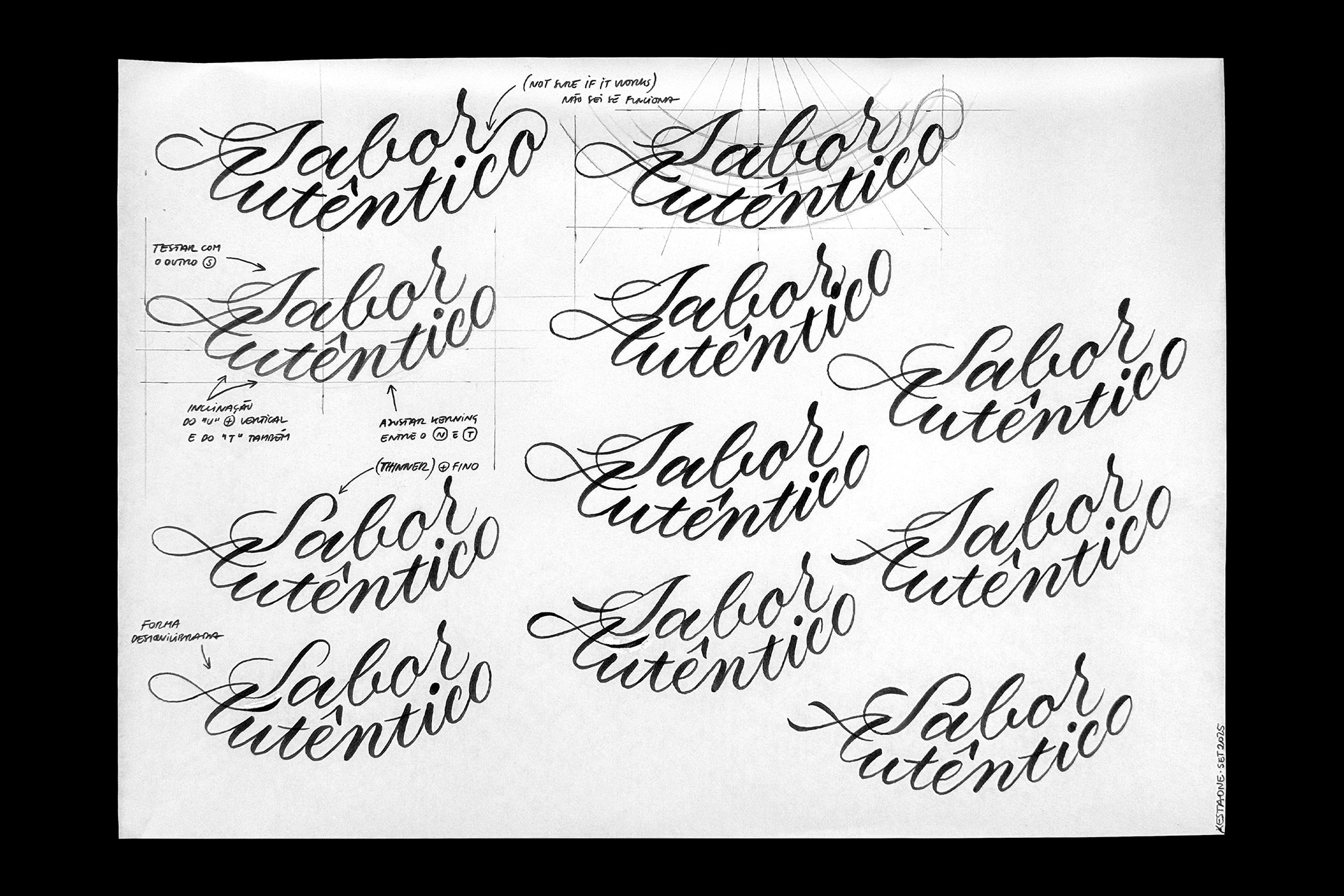 I've tried to maintain the same style/vibe from the last sketches of "Sabor Autêntico" with several options for each word, mainly in the capital letters.