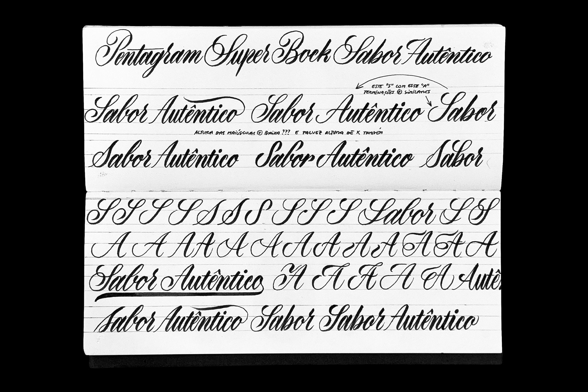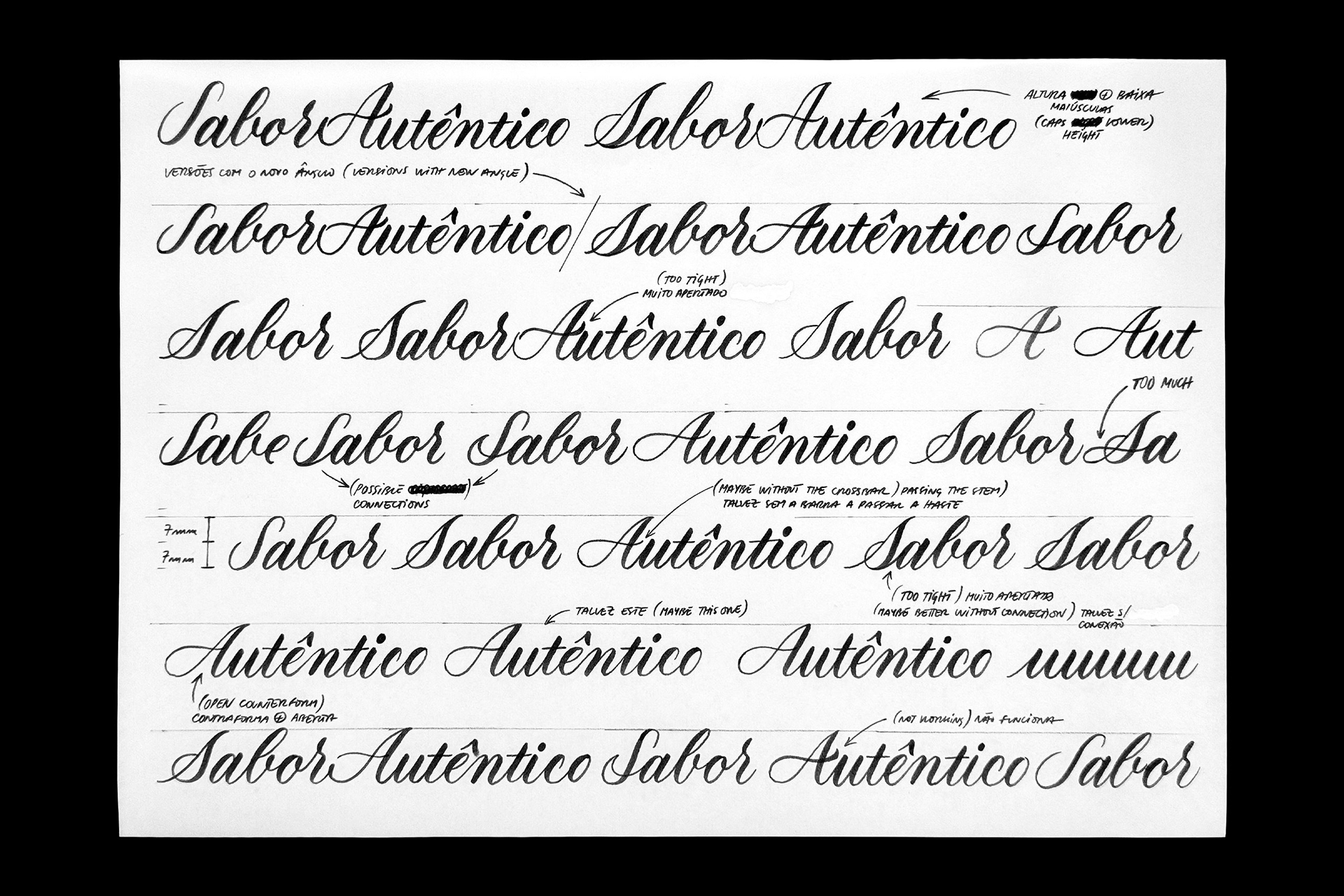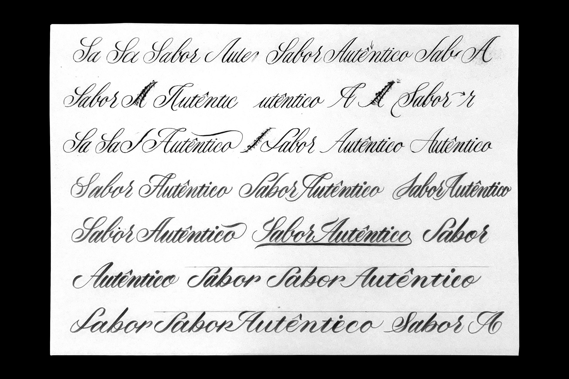 I've tried to maintain the same style/vibe from the last sketches of "Sabor Autêntico" with several options for each word, mainly in the capital letters.