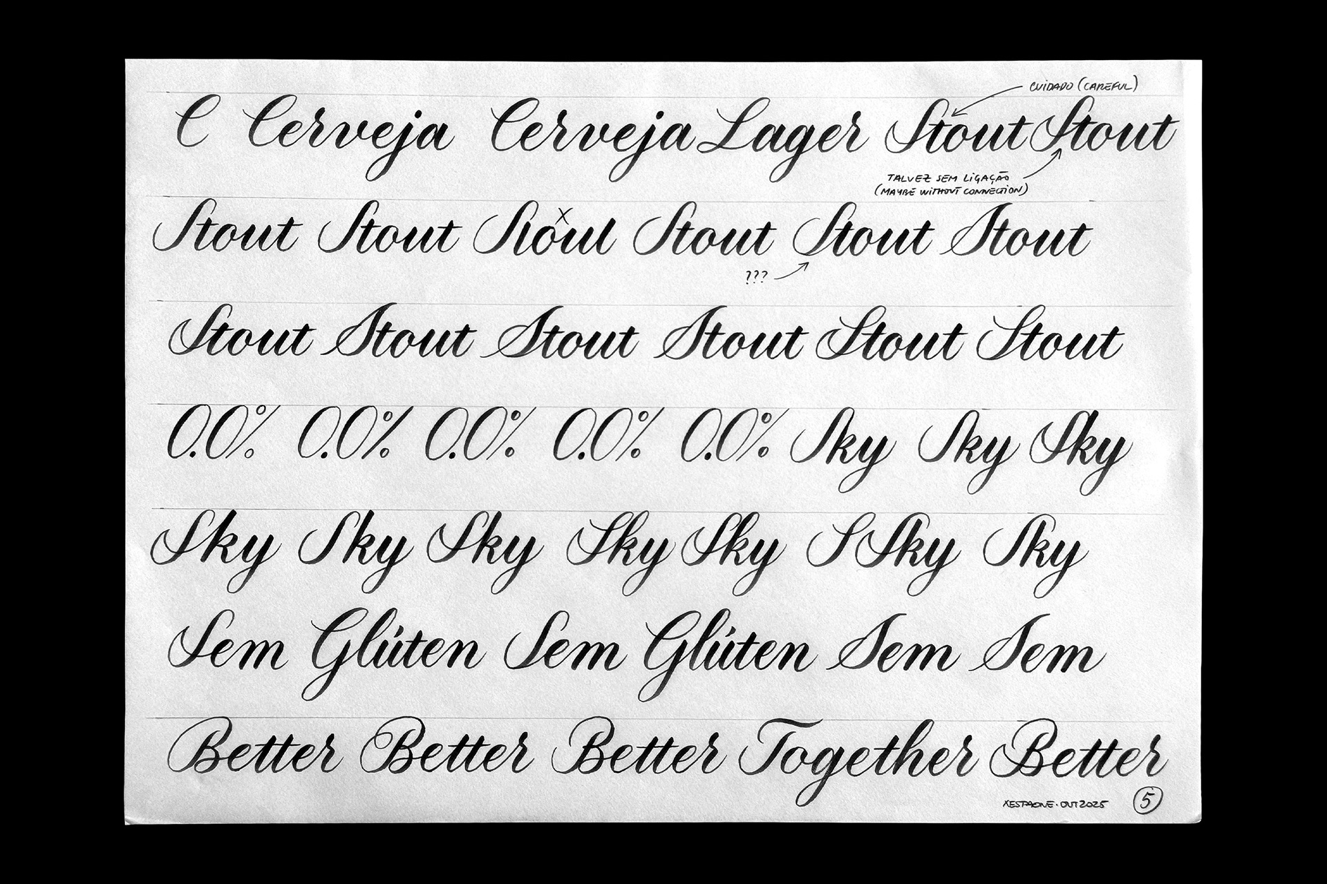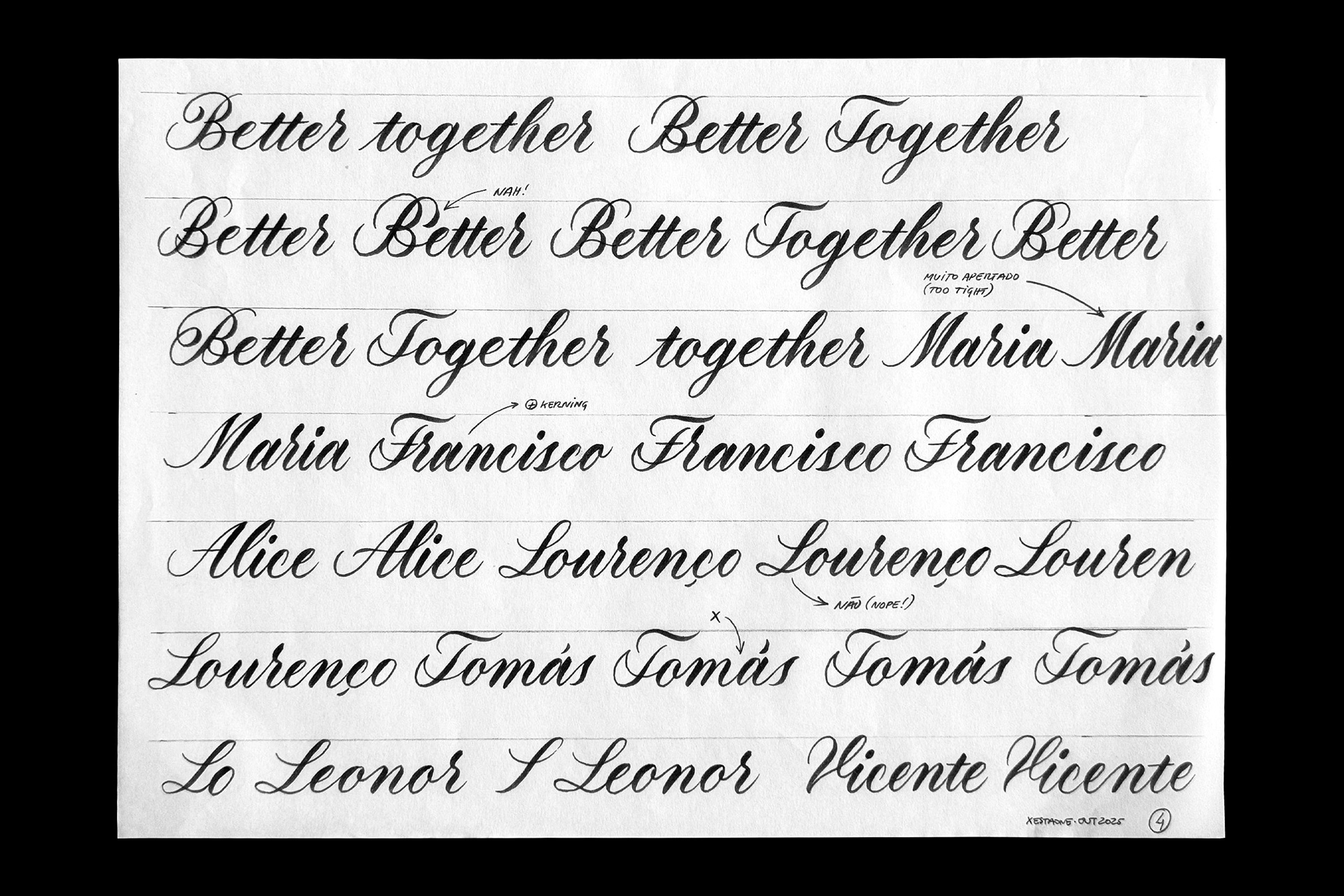 Third round of sketches with some versions of names and words.